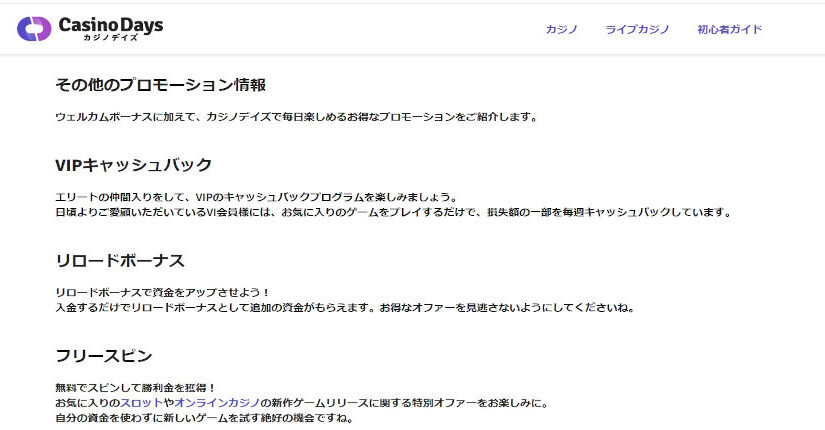 カテゴリー別・記事一覧 人気オンラインカジノのミスティーノは仮想通貨も対応!その入金方法を紹介! 投稿日:2024/10/27 人気オンラインカジノのミスティーノでは、仮想通貨による入金が可能です。 仮想通貨での入金が初めての方も安心できる簡単なシステムなのも魅力です […] 続きを読む > 続きを読む > ベラジョンカジノで本格プレイが楽しめる!パチンコ・エンジェルローズの紹介 投稿日:2024/10/26 ベラジョンカジノでは、オンラインパチスロやパチンコが手軽に楽しめるパチンコ館が大人気です。 中でも注目を集めるのが、オリジナル機種「エンジェ […] 続きを読む > 続きを読む > ラッキーニッキーで入金不要ボーナスを有効活用!注意点も知ってチャンスを広げる 投稿日:2024/10/25 ラッキーニッキーの入金不要ボーナスは、アカウントを開設するだけで40ドルのボーナスマネーが手に入るお得なチャンスです。 メール承認を完了させ […] 続きを読む > 続きを読む > カジノデイズ名物の大抽選会を紹介!豪華な賞品やシステムについて解説 投稿日:2024/10/24 オンラインカジノのカジノデイズでは、豪華な賞品が当たる名物イベント、大抽選会がかつて行われていました。 今回は、カジノデイズで行われていた大 […] 続きを読む > 続きを読む > 遊雅堂(ゆうがどう)とは?【2025年最新】評判と運営元、初回ボーナス・スポーツベットを徹底解説! 投稿日:2024/10/23 遊雅堂は世界で人気のベラジョンカジノの姉妹カジノです。お得に遊べるプロモーションの数々と、カジノからスポーツべットまで多彩なコンテンツを揃え […] 続きを読む > 続きを読む > ウィニングキングスの素晴らしいボーナスについて解説 投稿日:2024/10/22 ウィニングキングスは2020年に設立された比較的新鋭のカジノとして知られています。 ただし、かの有名なカジノであるラッキーニッキーの姉妹店で […] 続きを読む > 続きを読む > 豊富なカジノミー出金方法について解説! 投稿日:2024/10/21 カジノミーは2020年10月と比較的近年に設立されたオンラインカジノです。 このカジノを運営している会社、sweetspot n.vは既に業 […] 続きを読む > 続きを読む > カジノデイズの入金ボーナスは熱い!3つの入金ボーナスと内容を一挙に解説! 投稿日:2024/10/20 オンラインカジノのカジノデイズでは、入金で受け取れるお得なボーナスが充実していました。 その内容でプレイヤーの資金を強力にサポートしているこ […] 続きを読む > 続きを読む > 圧倒的なプレイアモの入金方法の幅広さ 投稿日:2024/10/19 プレイアモは2016年に設立されたオンラインカジノです。 豊富なボーナスや、魅力的なプロモーションをはじめ、非常に多くのゲーム数を誇るなど長 […] 続きを読む > 続きを読む > ウィニングキングスの豊富な出金方法についてしっかり解説 投稿日:2024/10/18 ウィニングキングスは近年非常に人気を博しているオンラインカジノの一つとして知られています。 実はかの有名なラッキーニッキーの姉妹店としての側 […] 続きを読む > 続きを読む >
