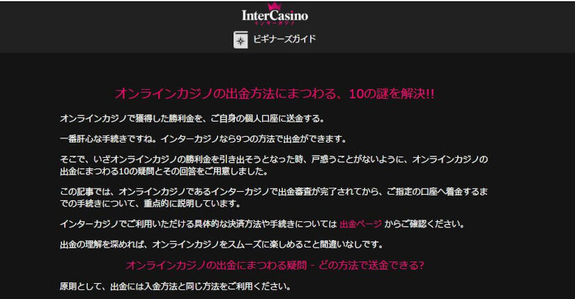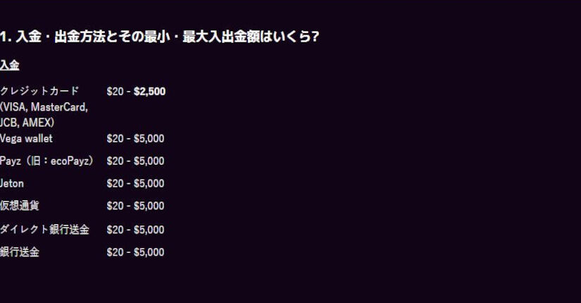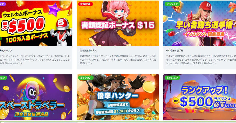 カテゴリー別・記事一覧 インターカジノの出金方法を知ってスムーズに出金しよう!その方法を解説 投稿日:2024/11/27 オンラインカジノの大手、ベラジョンカジノの姉妹カジノとして20年以上もの実績を誇るのがインターカジノです。 その長年のノウハウから出金方法も […] 続きを読む > 続きを読む > カジノミーで入金できないケースの対応方法や手数料・限度額を解説 投稿日:2024/11/26 オンラインカジノ「カジノミー」の入金方法は、意外にも簡単で便利です。 多くの人がオンラインカジノは海外運営のため入金が難しいと考えがちですが […] 続きを読む > 続きを読む > 遊雅堂の入金不要ボーナスはお得?知っておきたい出金条件についても解説 投稿日:2024/11/25 遊雅堂は、日本人ユーザー向けにもデザインされたオンラインカジノで、特に注目を集めているのが「入金不要ボーナス」です。 このボーナスは、初回の […] 続きを読む > 続きを読む > 引き出し条件がつかない?ビットカジノの魅力的なボーナスを一挙紹介 投稿日:2024/11/24 ビットカジノで遊んでみたいけど、ボーナスの引き出し条件が気になるという方は多くいます。 しかし、ビットカジノでは、さまざまなボーナスが用意さ […] 続きを読む > 続きを読む > ミスティーノの出金方法の流れを解説!出金できない場合の原因についても解説 投稿日:2024/11/23 ミスティーノは多彩なゲームが楽しめる魅力的なオンラインカジノです。 しかし、出金方法を知っておかないと楽しみは半減します。 そこで今回は、ミ […] 続きを読む > 続きを読む > 遊雅堂のボーナスで特にメリットの大きなボーナスは?全ボーナスを解説しながら紹介 投稿日:2024/11/22 遊雅堂はボーナスの種類が豊富です。たとえばスポーツ用ウェルカムボーナスをはじめ、他のボーナスも見逃せません。 そこで今回は各ボーナスの内容や […] 続きを読む > 続きを読む > バンバンカジノのボーナスはわかりやすい!それぞれ詳しく解説 投稿日:2024/11/21 オンラインカジノ、バンバンカジノのボーナスは非常に分かりやすく、プレイヤーにとって魅力的なものになっています。 定番の入金不要ボーナスや初回 […] 続きを読む > 続きを読む > コニベットは出金できない?出金方法を知ってスムーズに勝利金を手にしよう! 投稿日:2024/11/20 コニベットは2019年に誕生した新進気鋭のオンラインカジノで、特にスムーズな出金手続きが魅力で出金しやすいサービスに数えられます。 最短5分 […] 続きを読む > 続きを読む > バンバンカジノの出金方法は難しい?その手順と出金条件について解説 投稿日:2024/11/19 今回はオンラインカジノ、バンバンカジノの出金方法について、初心者でもわかりやすく解説します。 出金手続きは少し複雑に感じるかもしれませんが、 […] 続きを読む > 続きを読む > ミスティーノの入金不要ボーナス!禁止ゲームを知って出金できるようにする 投稿日:2024/11/18 ミスティーノの入金不要ボーナスは、オンラインカジノ初心者にとって魅力的な内容です。 4,500円のボーナスがもらえ、賭け条件がわずか5倍と非 […] 続きを読む > 続きを読む >