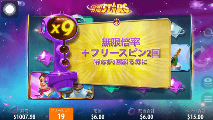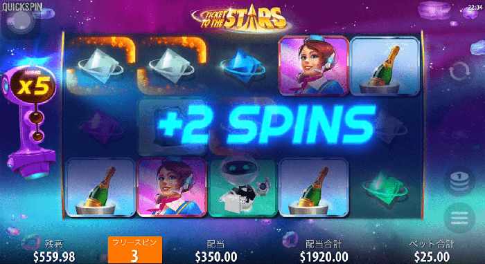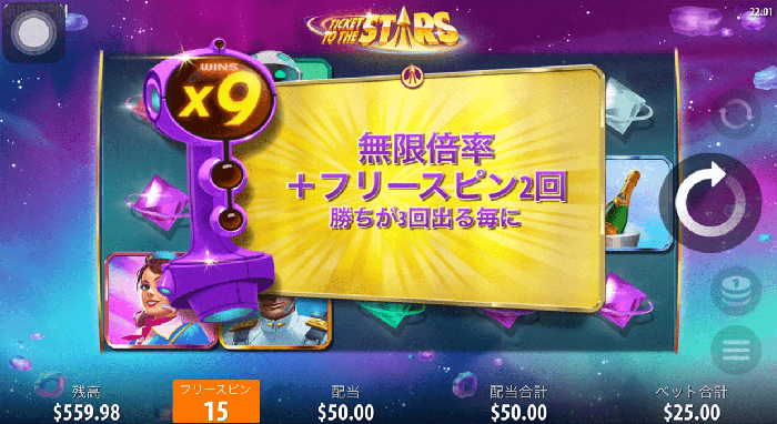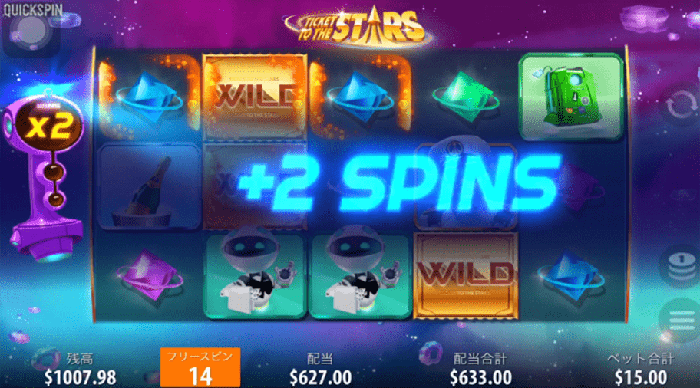 そして3回払い戻しがあると+2回スピン追加で倍率がひとつ上がる!