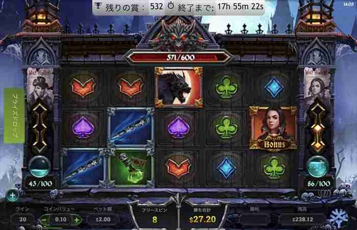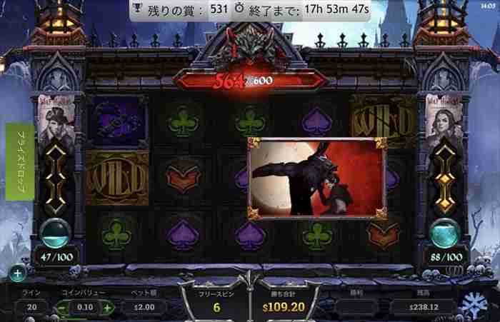 ベラジョンカジノの「WOLF HUNTERS」に的を絞りコツコツ体力を奪っていく。