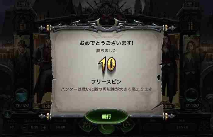 10回のフリースピン中はハンターの勝率が大幅アップ。