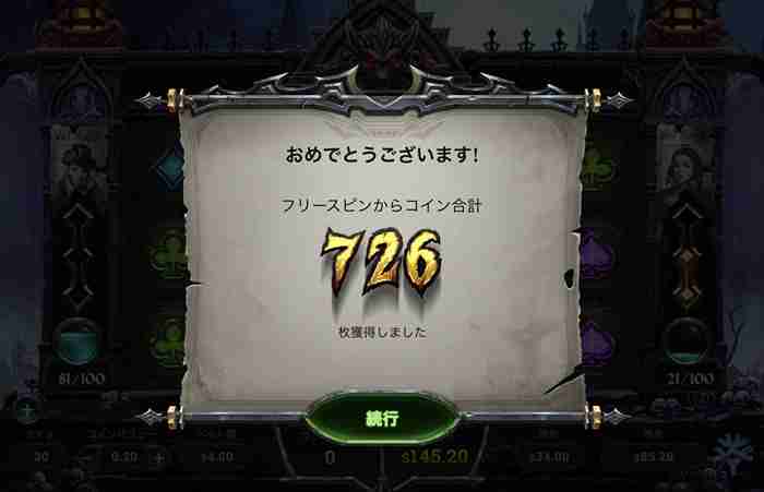 フリースピンの獲得額は $145 か・・・