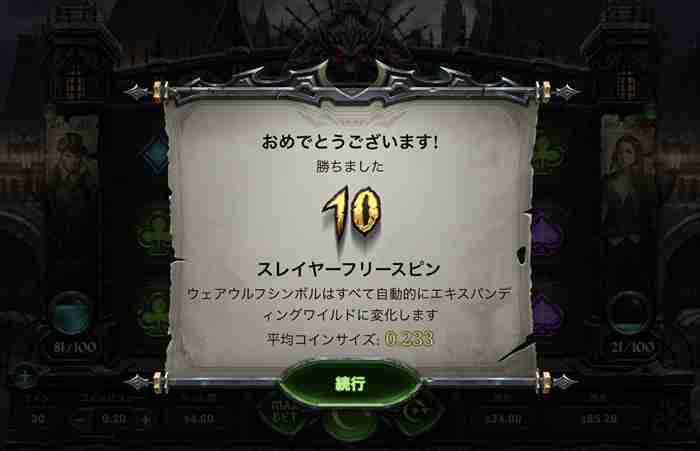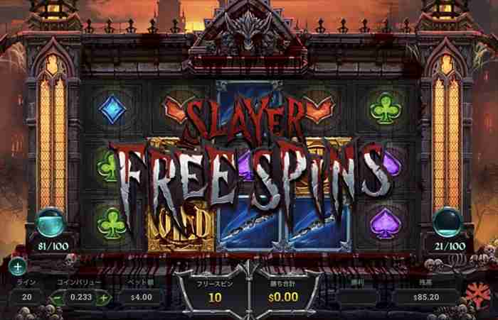 そして始まる10回の 「スレイヤーフリースピン」。