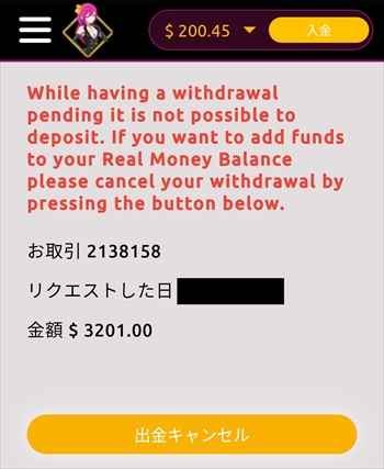 ラッキーニッキーカジノの引き出し時間は1日から2日くらい。早いほうだな。