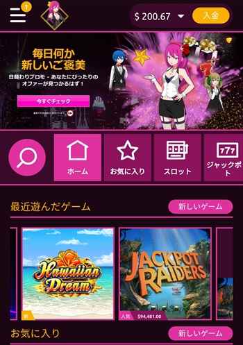 ラッキーニッキーカジノはニッキーちゃんがサイト内をわかりやすくナビゲートしてくれますので、初心者にもわかりやすく、安心のカジノです。ここにしか無いオリジナルゲームも楽しむことが出来ます。スマーフォンにも対応しており、シンプルなデザインと操作性に優れていますから、ストレス無く楽しめます。