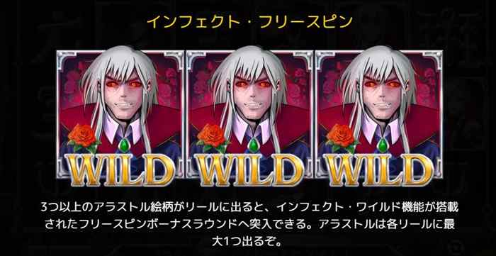 3つ以上のアラストル絵柄がリールに出るとインフェクト・フリースピンが獲得できる。