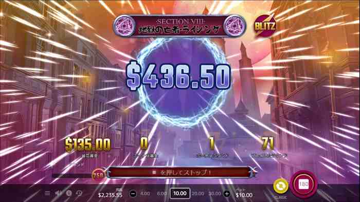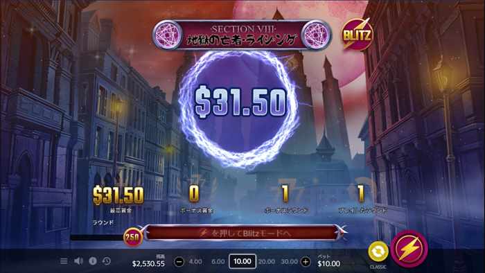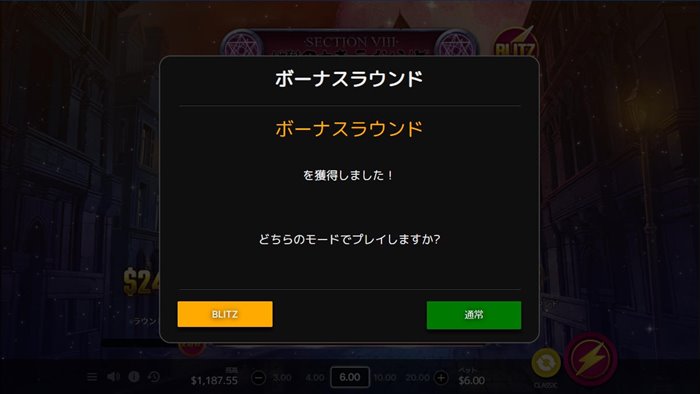 ここは通常の回転速度の6倍でスロットをプレイできる「BLITZ」モードで時短しかあるまい。