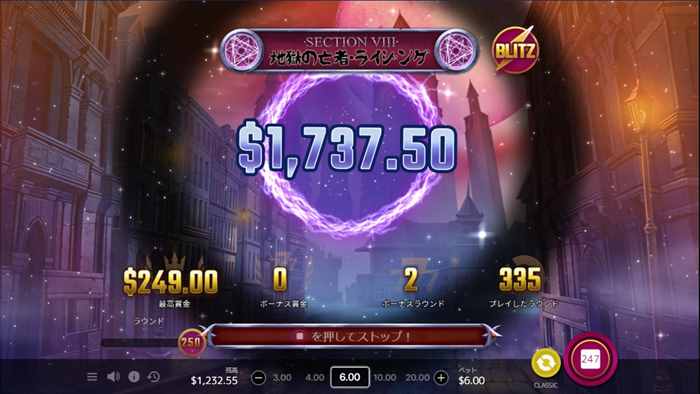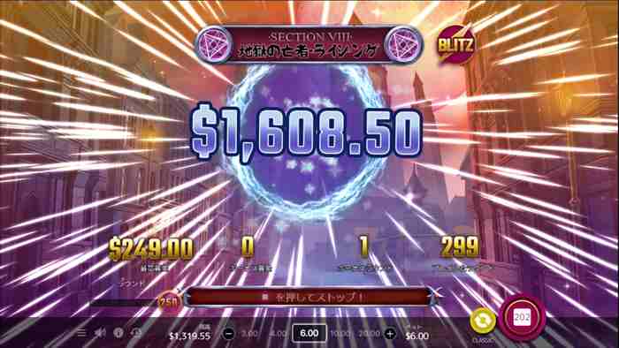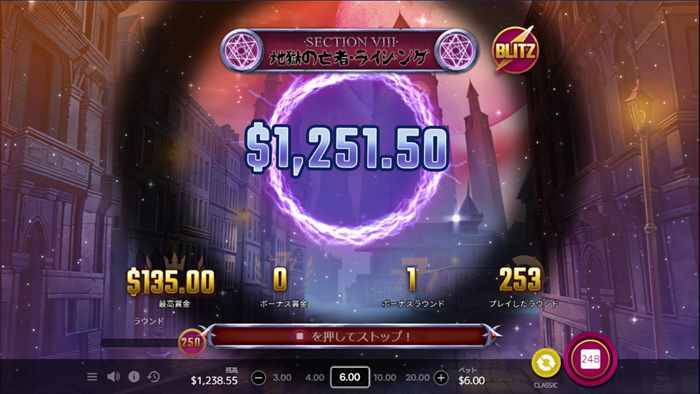 ベット額を$10から$6へ下げて、もう250BLITZだぜーーー!