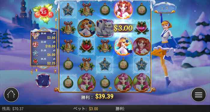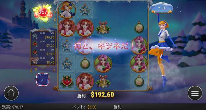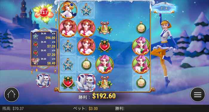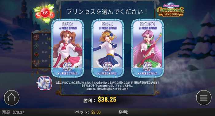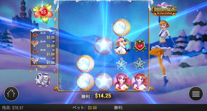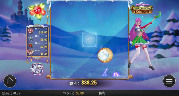 まずは『ムーンプリンセス・クリスマスキングダム』を$3ベットで乱打!