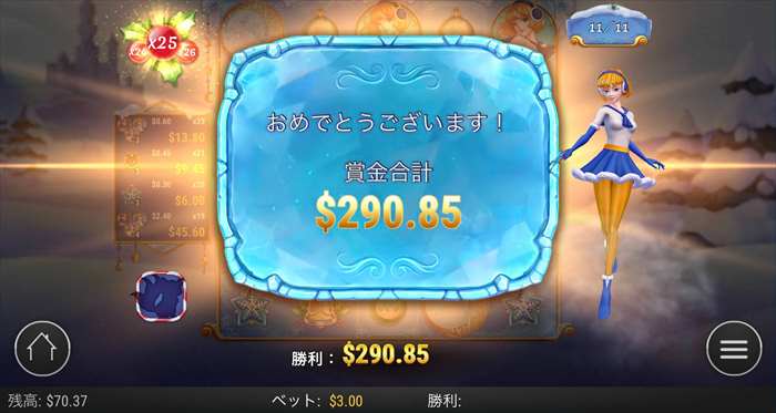 だが、ベット額$3の96.6倍の$290を獲得したぜーー!