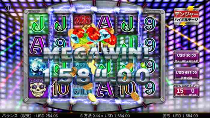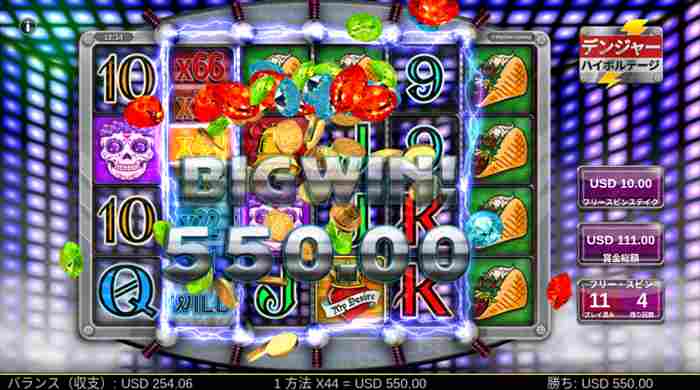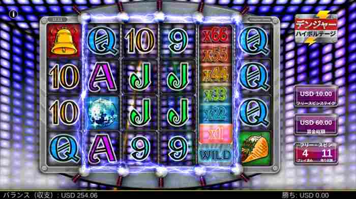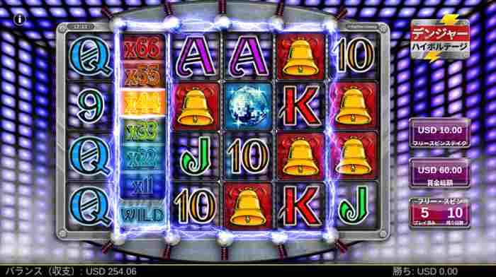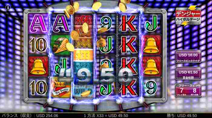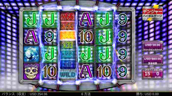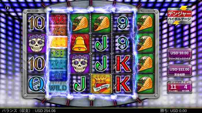 高電圧ワイルドは当たりの一部になると点灯し、11倍から最高66倍までマルチプライヤーがアップだぜ!