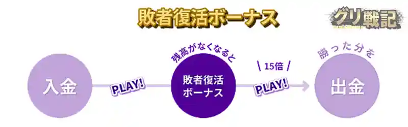 初回入金敗者復活ボーナス最大45000円(100%)が用意されています。