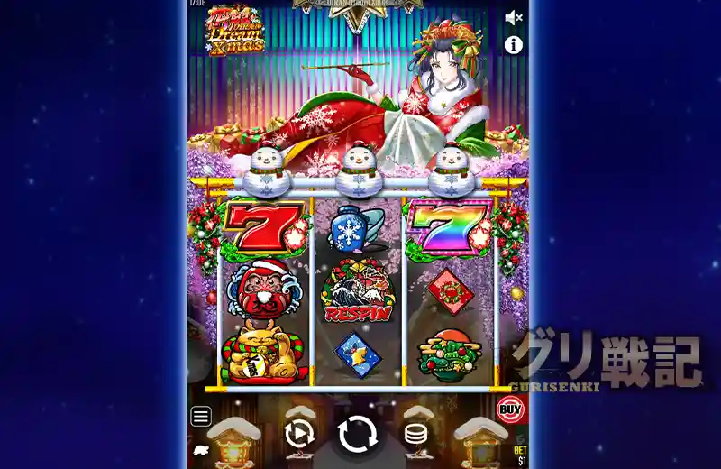 『花魁ドリームクリスマス』は、大人気スロット『花魁ドリーム』をさらにパワーアップさせた機種で、前作より通常時の配当が弱い分ラッシュ確率が高いという特徴があります。