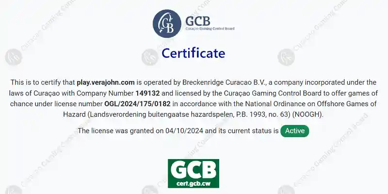 ベラジョンカジノを運営するBreckenridge Curaçao B.V. はオランダ領キュラソーに本拠地を置く海外企業で、キュラソー政府からオンラインカジノのライセンスを取得しています。
