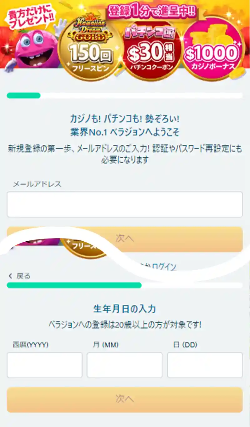 - ベラジョンカジノの公式サイトへアクセスして登録