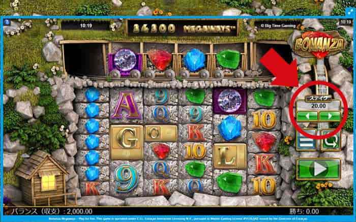 1ゲームあたりの賭け金を確認し、ご自身の適正な額に引き上げ、もしくは引き下げます。